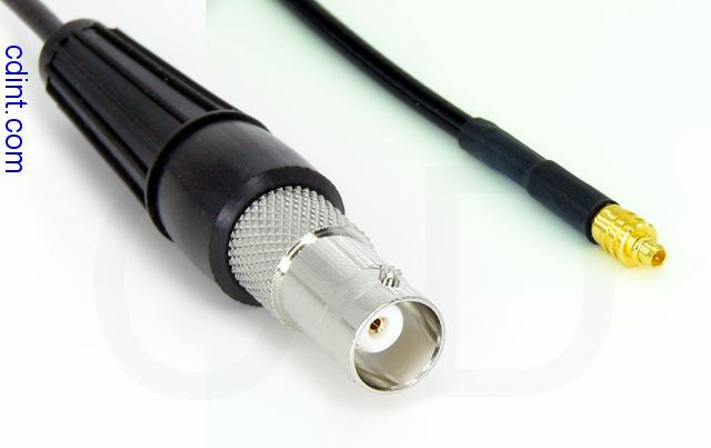 BFM2C-174-32 is a RG174 32 foot 50 ohm (9.76 meter) coax cable assembly with a BNC female connector on one end and a MMCX plug (male contact) connector on the other end.