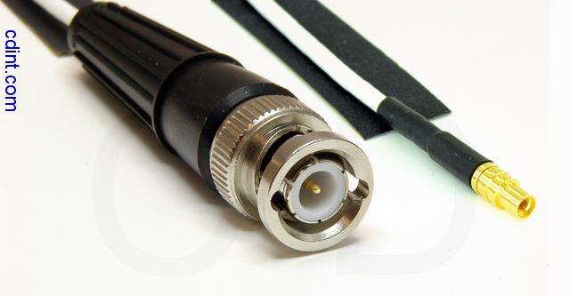BM2CJ-188-8 is a RG188 8 foot 50 ohm (2.44 meter) coax cable assembly with a BNC connector on one end and a MMCX jack (female contact) connector on the other end.