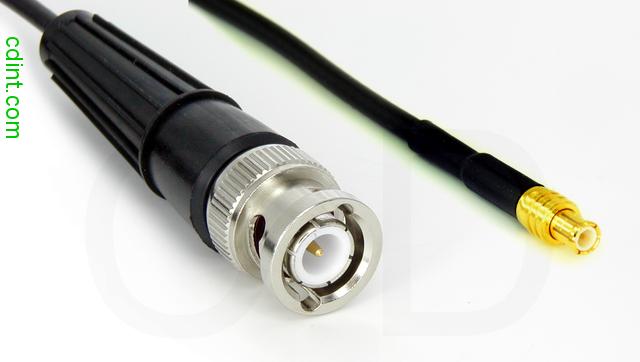 BMC-174-20 is a RG174 20 foot 50 ohm (6.1 meter) coax cable assembly with a BNC connector on one end and a MCX plug (male contact) connector on the other end.