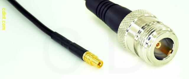 Coaxial Cable, MMCX jack (female contact) to N female, RG174, 50 foot, 50 ohm