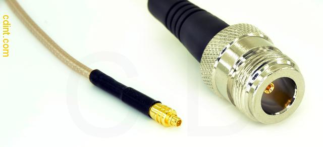 Coaxial Cable, MMCX plug (male contact) to N female, RG316, 50 foot, 50 ohm