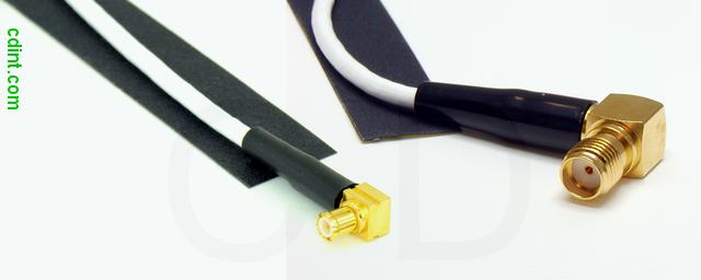 Coaxial Cable, MCX 90 degree (right angle) plug (male contact) to SMA 90 degree (right angle) female, RG188 low noise, 10 foot, 50 ohm