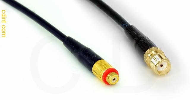 MFSAF-174-16 is a RG174 16 foot 50 ohm (4.88 meter) coax cable assembly with a 10-32 (Microdot compatible) female connector on one end and a SMA female connector on the other end.