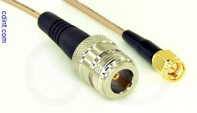 NFSA-316-10 is a RG316 10 foot 50 ohm (3.05 meter) coax cable assembly with a N female connector on one end and a SMA connector on the other end.