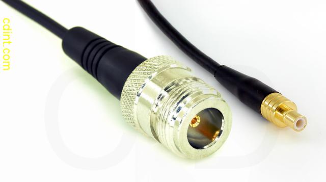 Coaxial Cable, N female to SMB jack (male contact), RG174, 8 foot, 50 ohm