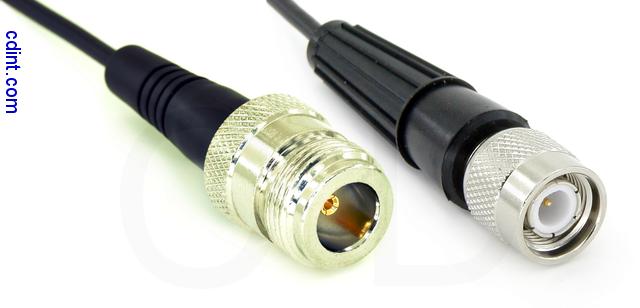Coaxial Cable, N female to TNC, RG174, 4 foot, 50 ohm