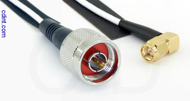 Coaxial Cable, N to SMA 90 degree (right angle), RG188, 1 foot, 50 ohm