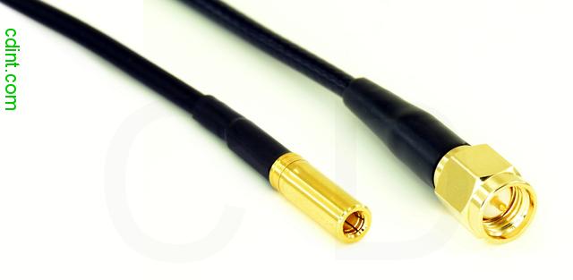 Coaxial Cable, SSMB to SMA, RG174 low loss, 1 foot, 50 ohm