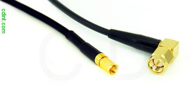 Coaxial Cable, SSMC to SMA 90 degree (right angle), RG174, 40 foot, 50 ohm
