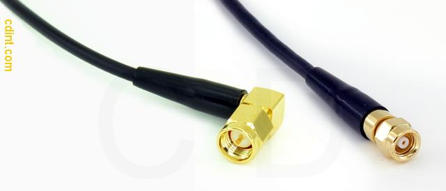Coaxial Cable, SMA 90 degree (right angle) to SMC (Subvis), RG174, 12 foot, 50 ohm