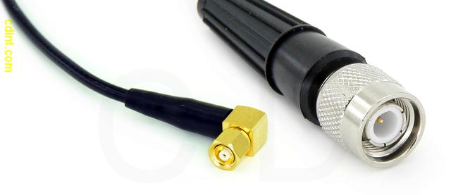 Coaxial Cable, SMC (Subvis) 90 degree (right angle) to TNC, RG174, 24 foot, 50 ohm